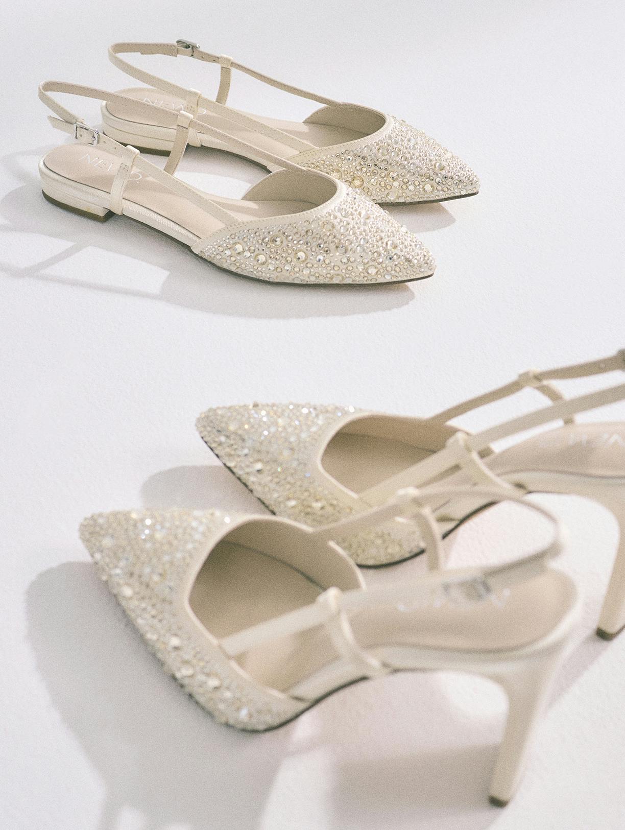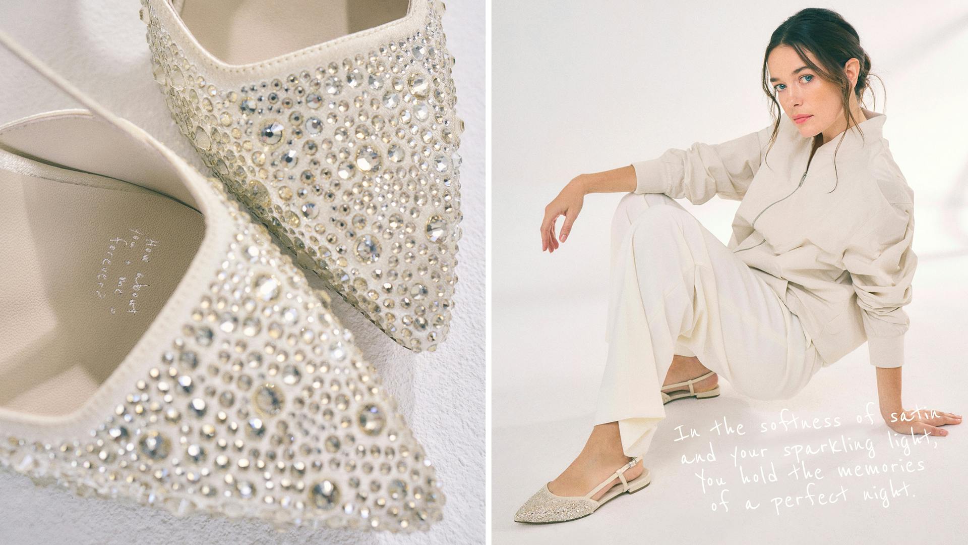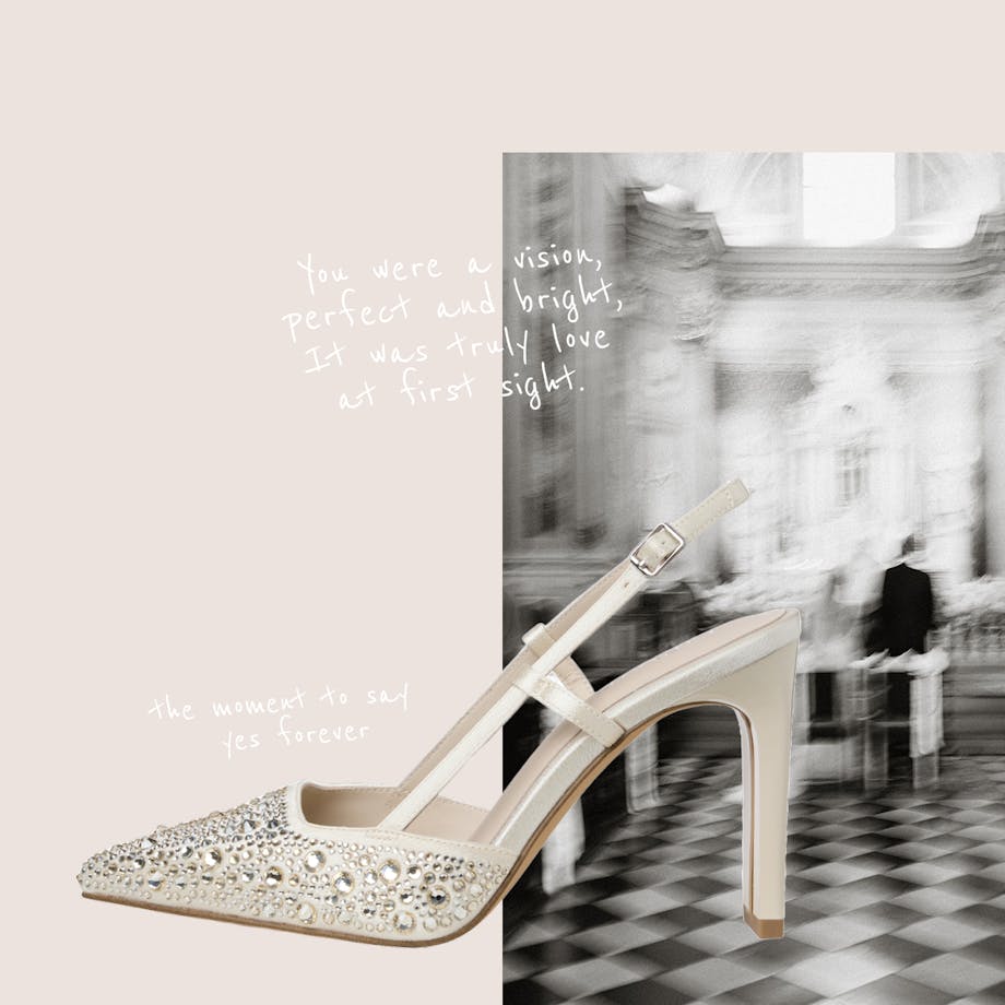 Die perfekten Begleiter für den ganz besonderen Tag: deine Hochzeit! Elegante Sling-Pumps, veredelt mit funkelnden Glitzersteinen, die für strahlende Akzente sorgen. Diese Brautschuhe begleiten dich mit unschlagbarem Tragekomfort durch einen unvergesslichen Tag.