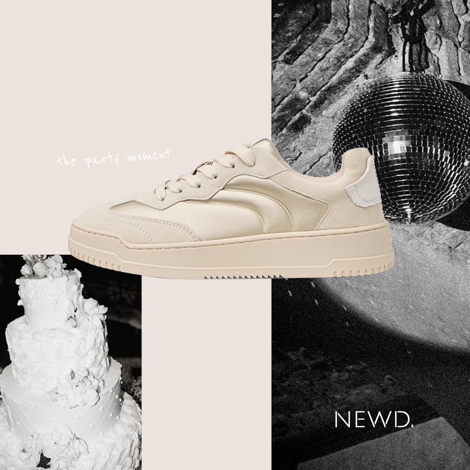 Unser Geheimtipp für die lange Partynacht: Der Sneaker NWD-777 im angesagten Satin-Beige-Look.