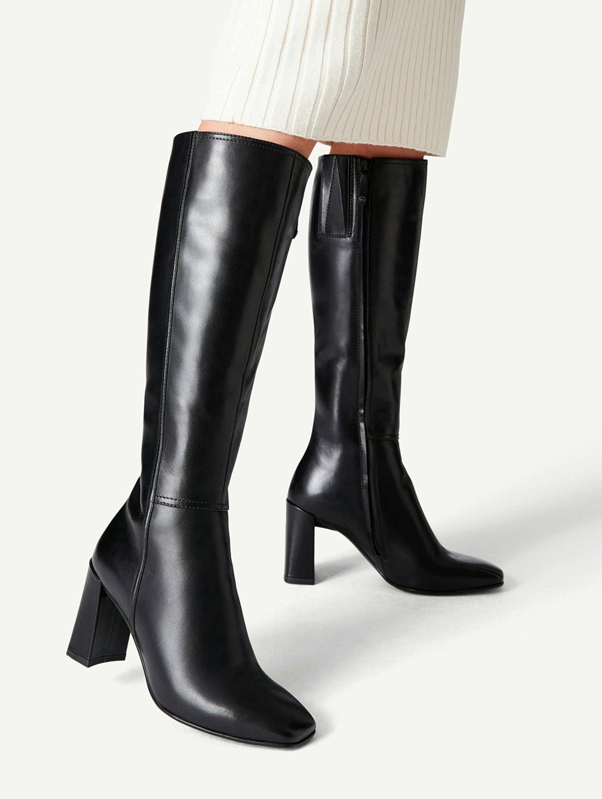Festliche Eleganz trifft auf zeitgemäße Nonchalance – Ein verlässliches Duo für die besinnlichen Tage und darüber hinaus. Feminine Ankle Boots und Blockabsatz-Stiefel aus feinstem Leder in stilvollem Black unterstreichen den anmutigen Auftritt mit cleanem Chic.