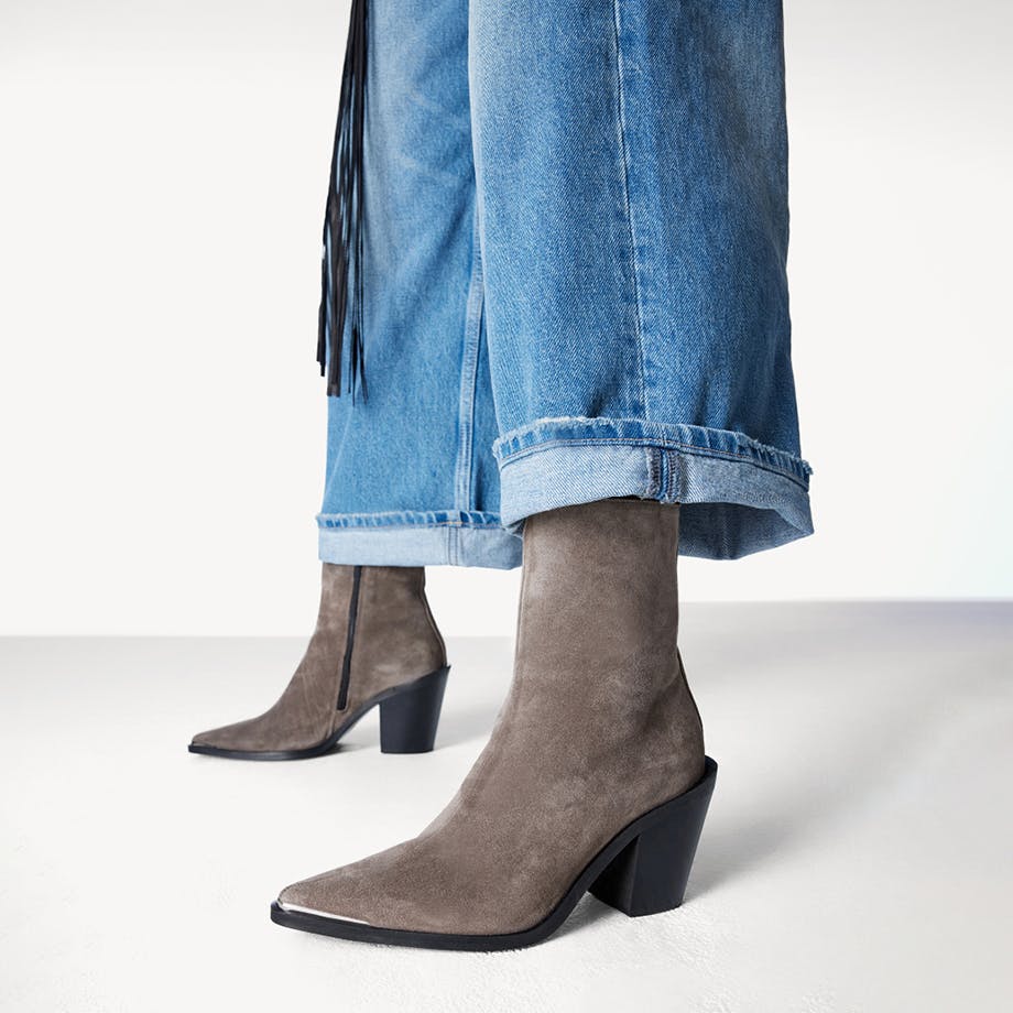 Un modèle épuré aux allures de western : le style Far West typqiue est remis au goût du jour. Avec la botte de cowboy, un classique de la mode fait son grand retour et séduit par sa silhouette caractéristique et son style original : un modèle incontournable pour tous les amateurs d'aventures. Avec son look inimitable, il évoque l'immensité des plaines et le sentiment de liberté et se décline dans une multitude de variantes. En contraste saisissant avec un jean décontracté ou en rupture de style avec une robe légère, affichez votre sens de la mode et laissez-vous entraîner par l'esprit de liberté du Wild West.